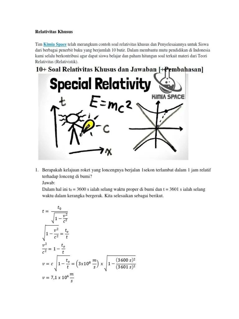 Soal tentang pembahasan relativitas khusus yang didalamnya terdapat postulat einsten.